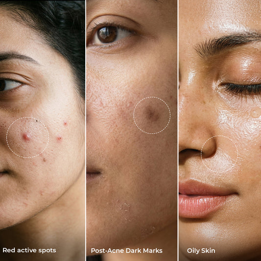 That Summer Glow You Wanted? Your Pores Have Other Plans. Every year, as the mercury climbs past 38°C and the humidity settles like a warm, invisible blanket over Indian cities, millions of adults find themselves battling the same frustrating phenomenon: their skin goes rogue. You cleanse faithfully. You moisturize. You try to eat right, and yet, by mid-May, there they are. Tiny, angry, heat-induced breakouts clustering along your jawline, forehead, and yes, even your back and chest. Summer acne is incredibly common and incredibly misunderstood. Most people believe it's about being "dirty" or not cleansing enough. The reality is far more interesting and far more fixable than that. This guide is your complete, honest, science-meets-tradition roadmap to understanding why summer triggers breakouts, what your skin is actually asking for, and how to give it exactly that, using ingredients your dadi would recognize and your dermatologist would approve. Why Does Summer Make Your Skin Break Out? Before you can fix a problem, you need to understand it. Summer acne isn't just "regular acne" with worse timing. It has distinct triggers that set it apart from the hormonal or stress-related breakouts you might experience at other times of year. 1. Heat Accelerates Sebum Production Your sebaceous glands are sensitive to temperature. When the weather is hot, your skin produces significantly more sebum (natural oil) as a protective response. While sebum itself is beneficial, it keeps skin moisturized and acts as a barrier; excess sebum mixes with dead skin cells and becomes the perfect recipe for clogged pores. 2. Sweat Is Not the Enemy - But What It Mixes With Is Sweat, on its own, is actually mildly antibacterial. The problem begins when sweat sits on your skin for extended periods, mixing with surface bacteria, pollution particulates, and residual product buildup. This combination creates a biofilm on your skin's surface that can push bacteria - particularly Cutibacterium acnes (formerly Propionibacterium acnes) - deeper into your pores. 3. Humidity Disrupts Your Skin Barrier High humidity creates a paradox: your skin feels "moist," but your moisture barrier is actually compromised. Humidity prevents sweat from evaporating properly, keeping your skin in a constant state of mild dampness that weakens the acid mantle, the protective film that keeps bacteria out and hydration in. 4. UV Exposure Worsens Post-Acne Marks Even if the sun doesn't directly cause your breakouts, it significantly amplifies their aftermath. UV radiation stimulates melanin production in already-inflamed skin, turning minor pimples into stubborn dark spots (post-inflammatory hyperpigmentation or PIH) that can linger for months. Did You Know? A single pimple left unprotected under the summer sun can leave a dark spot that takes 3–6 months to fade, significantly longer than the pimple itself lasted. This is why sun protection isn't just aesthetic; it's a core acne management strategy. 5. Summer Lifestyle Habits Make Things Worse Iced coffees, sugary cold drinks, irregular sleep, and the general chaos of Indian summers all have measurable effects on cortisol and insulin levels, both of which can aggravate acne. Add chlorine from swimming pools, salty sweat sitting on skin, and the temptation to touch your face more frequently, and you have a perfect storm.. Also Read: Why Does Skin Get Oily in Summer? Causes & Fixes The Ancient Wisdom That Still Works: Dadi-Nani's Summer Skin Secrets Long before dermatologists, double cleansing, and 12-step routines, Indian women managed to maintain clear, healthy skin through monsoons, scorching Rajasthani summers, and humid coastal heat. How? With kitchen-cabinet ingredients that we've often dismissed as "old-fashioned," but science is increasingly validating. These ingredients form the foundation of what CITTA calls conscious skincare, the meeting point between grandmothers' intuitive wisdom and modern dermatological science. The One Summer Skincare Step Most Acne-Prone People Skip (And Shouldn't) Here's something counterintuitive that we need to address directly: most people with acne-prone skin skip sunscreen in summer, fearing it will make their breakouts worse. This is one of the most common and costly skincare mistakes you can make. The concern is understandable. Traditional sunscreens can be thick, greasy, and pore-clogging. But skipping SPF entirely means: UV radiation inflames already-active breakouts, making them larger and more painful Every post-acne mark (PIH) becomes significantly darker and longer-lasting UV exposure increases oil production, worsening the very problem you're trying to avoid Your skin's natural repair mechanisms are disrupted by daily UV damage The solution isn't to go without sun protection; it's to choose the right sun protection for your skin type. Why Niacinamide in Sunscreen Is a Summer Game-Changer Niacinamide (Vitamin B3) is one of the most well-researched skincare actives of the last decade. In the context of summer acne, it's particularly powerful because it works on multiple fronts simultaneously: it regulates sebum production at the source, strengthens the skin's moisture barrier, visibly reduces pore size over time, and fades post-inflammatory hyperpigmentation, those frustrating dark marks left behind by healed pimples. When combined with SPF 50 PA+++ broad-spectrum protection, you're not just shielding your skin from UV damage; you're actively treating the conditions that make summer acne worse. It's the kind of thoughtful, multi-tasking formulation that transforms a "grudging daily step" into one you'll actually look forward to. Your 5-Step Summer Skincare Routine for Acne-Prone Skin Consistency beats complexity every single time. You don't need fifteen products, you need the right five, used in the right order, every day. Here's the framework that works: 1. Gentle Cleanse - Twice Daily, No More Use a pH-balanced, sulphate-free cleanser morning and n