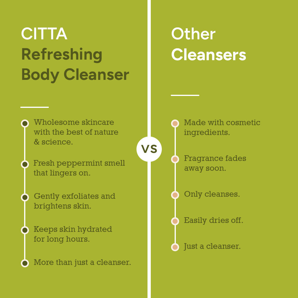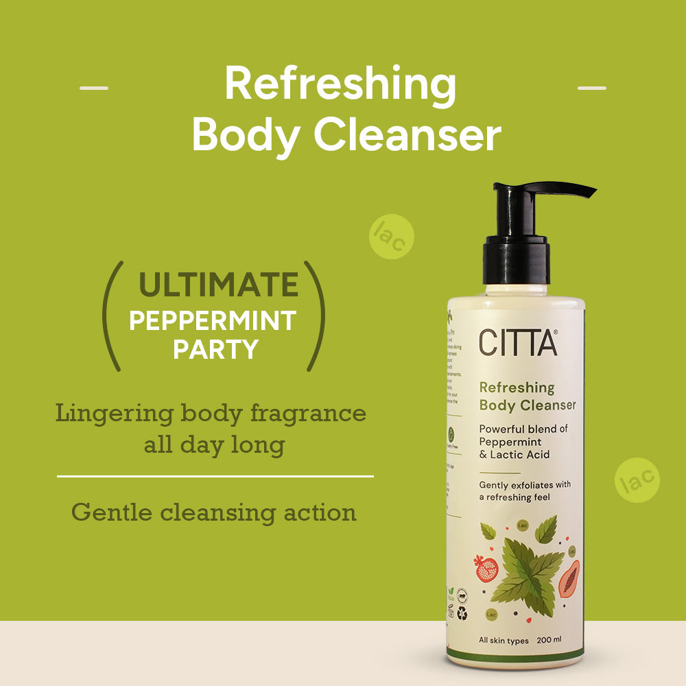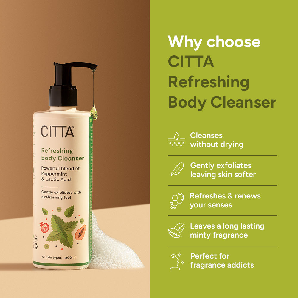 CITTA Refreshing Body Cleanser is thoughtfully formulated for all skin types, offering cooling and hydrating benefits. -